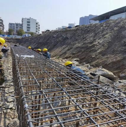 目前,該項目正在緊鑼密鼓的施工中。該項目由基坑支護部分、主體結(jié)構(gòu)部分、附屬配套設(shè)施部分三大塊組成,支護樁基礎(chǔ)和主體結(jié)構(gòu)樁基已全部施工完畢,當(dāng)前正在進行基坑支護部分的冠梁、支撐梁等支撐系統(tǒng)施工,預(yù)計4月份完成全部冠梁支撐梁施工,4月中下旬進行基坑開挖、主體結(jié)構(gòu)施工。