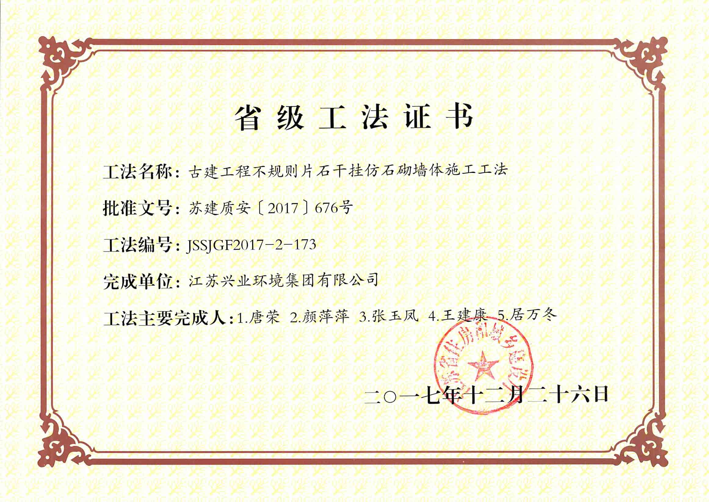 2017年度江蘇省省級工法
