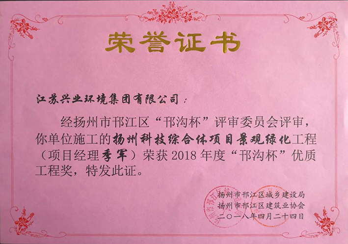 2018年度“邗溝杯”優質工程獎