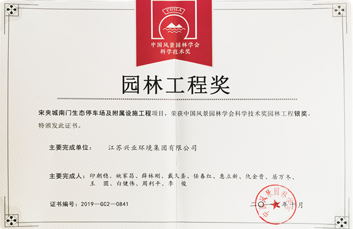 2019年度中國風景園林學會園林工程獎銀獎(宋夾城西門停車場及附屬設施工程)